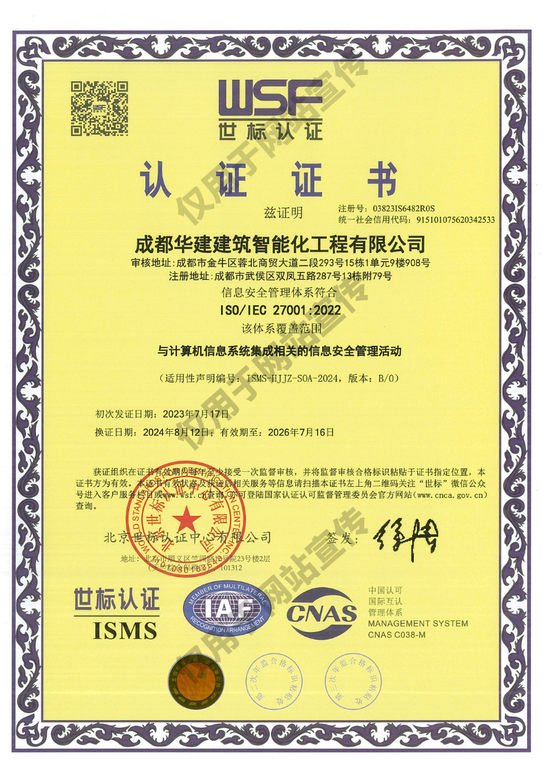 項目名稱:綿陽市游仙區激光產業基地項目二標段 弱電工程; 公司簡介:項目名稱:綿陽市游仙區激光產業基地項目二標段弱電工程施工單位:成都華建建筑智能化工程有限公司工程地點:四川省綿陽市施工內...